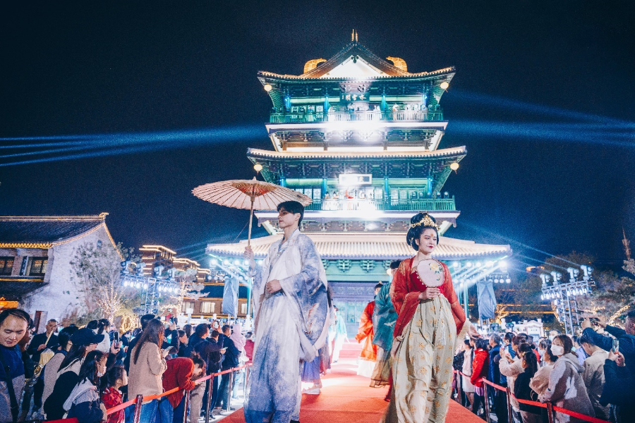 簡介:串場河是鹽城一條歷史悠久的大河,已有1200多年的歷史,孕育了深厚的鹽文化,豐厚了沿線各地人文史話。一場以串場河之旅開啟的行進式實景演出《串場夜畫》,包含了淮劇《范公堤》經典唱段、情景表演《祭?!贰⒐诺湮璧浮端钟∠蟆?、輕樂隊表演《我把鹽城唱給你聽》、情景舞蹈《鶴鹿同春》、雙船表演《流動之境》等共10個演藝項目,充分展示串場河的景色之美、人文之美、風物之美。游客不論是乘坐游船還是漫步兩岸,都能在欣賞沿途風光的同時領略串場文化,感受鹽城夢幻之夜。